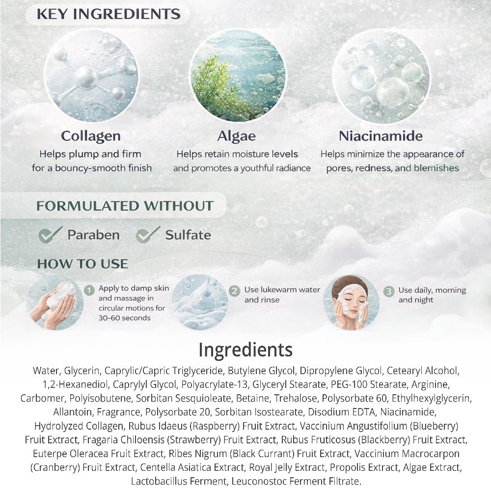 Dearcloud's signature Matcha Milky Whip Facial Cleanser helps effectively remove makeup and excess impurities. Powered by Allantoin and BHA to help decrease the appearance of blemishes and dullness. 5fl oz(150ml)