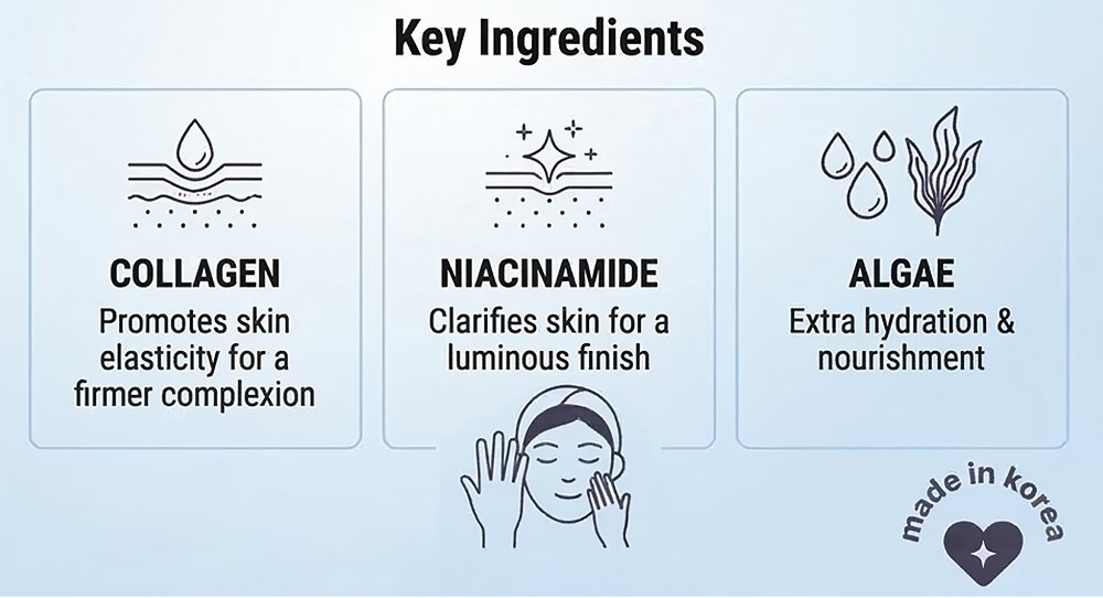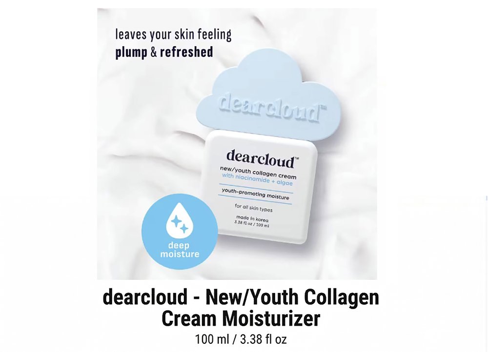 Dearcloud's New/Youth Collagen Cream Moisturizer firms and promotes exceptionally smooth, bouncy skin. Infused with Algae and Collagen to help achieve a dewy, plump complexion